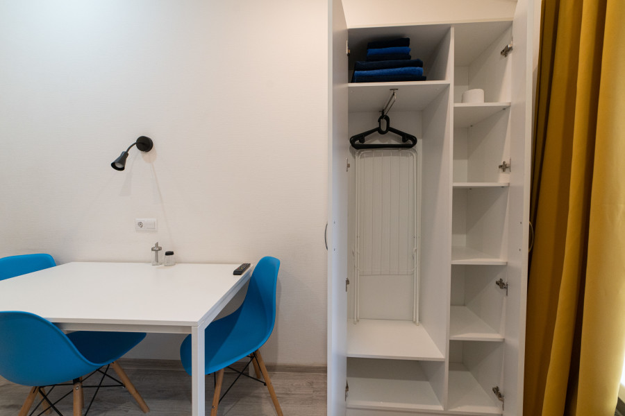 - Мебель: вешалка, диван раскладной, зеркало, матрас, стол, стулья, шкаф
